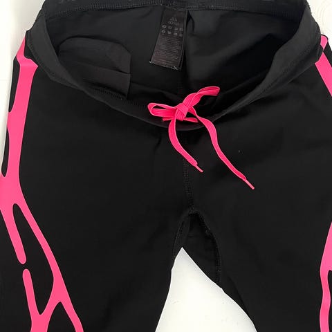 7/8 osa pitkät trikoot. Hyvässä kunnossa. Edessä kiristykseen naru. Takana tasku vetoketjulla.