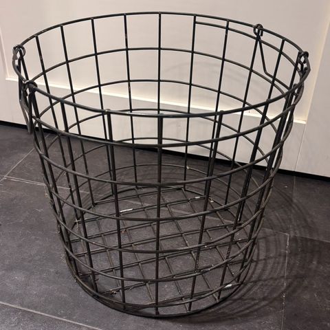 Musta iso metallikori. Säilytetty lankoja. Hieman pölyä
