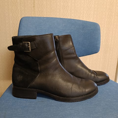 Edelleen hyvässä kunnossa olevat nahkasaappaat. Koroissa eniten käytön jälkiä.