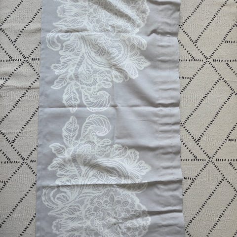 Käytetty, siistikuntoinen Vallilan Filigraani -kappaverho ei ole enää täydessä väriloistossaan, vaan jonkin verran haalistunut, joskin tasaisesti. Lähetys 4.50€