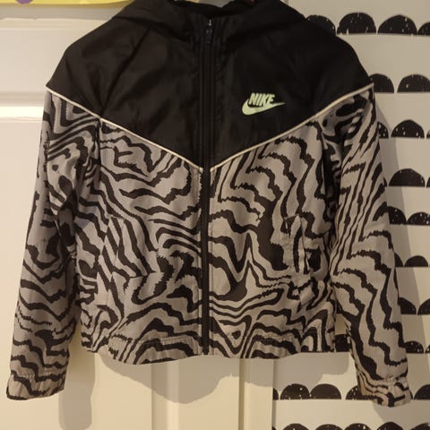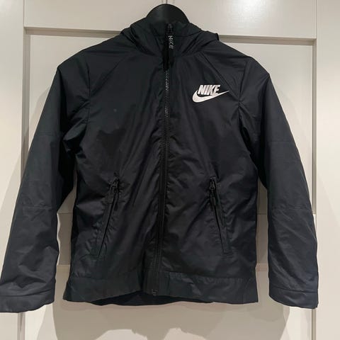 Nike musta kevyt takki fleecevuorella. Välilkauteen, leutoon talveen. Suora malli.