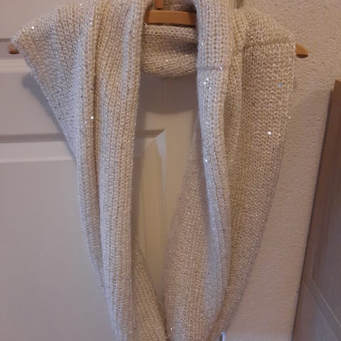Muhkea monivärinen kaulahuivi. Ostettu Glitteristä pari vuotta sitten, on ollut suht paljon käytössä. Hieman nukkaantunut, mutta ehjä, saa vielä siistiksi.