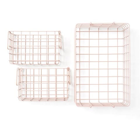 Kolme valkoista metallista koria (yksi iso ja kaksi pientä), joilla pidät tavarasi järjestyksessä. Korit on suunniteltu yhteensopivaksi peltikaappien kanssa. Yhdistä joko peltikaapin väriä vastaavat korit, tai käytä sopivaa vastaväriä ja viimeistelet tyylikkään ilmeen! Korit sopivat myös sijoitettavaksi peltikaapin päälle ja alle, tai sitten tyylikkäitä koreja voi käyttää ihan sellaisenaan. Tuotetiedot Sisältö: Pakkaus sisältää yhden ison korin ja kaksi pientä koria. Väri: Valkoinen Ison korin mitat: Korkeus 16cm, leveys 26cm, syvyys 40cm. Pienen korin mitat: Korkeus 16cm, leveys 17cm, syvyys 24,4cm. Paino: 2 kg