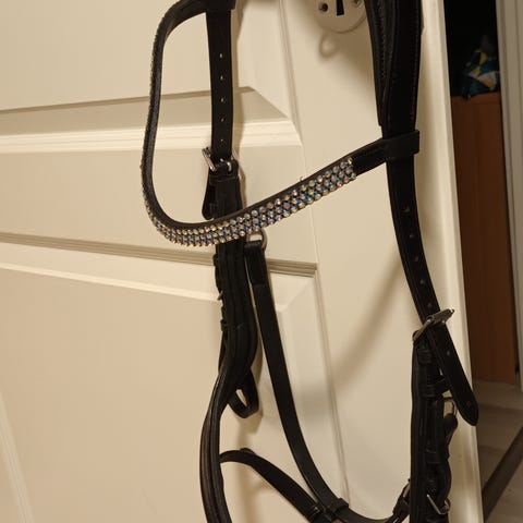QHP suitset koossa XFull, oikeasti todella reilua kokoa. Kaunis otsapanta ja irrotettava alaturparemmi. Nahkaa ja XFull mittaiset ohjat mukaan. Uudet, olleet kerran päässä ja todettu isoiksi.