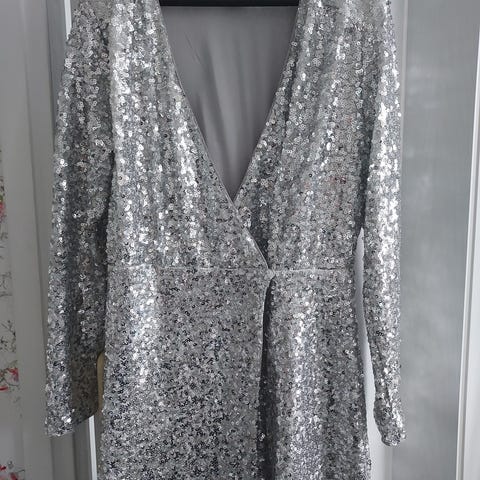 Uusi juhlapuku hohtavalla kankaalla, koko M