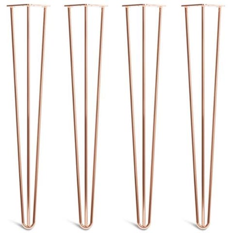 Täysi setti (4 kpl) laadukkaita metallisia pöydän jalkoja. Pinnijalat ovat pituudeltaan 30cm ja 2 sauvalla varustetut. Näillä jaloilla on mahdollista toteuttaa esimerkiksi unelmiesi sohvapöytä. Nämä pinnijalat soveltuvatkin hyvin esimerkiksi senkkiin tai lipastoon. Tuotetiedot Väri: Aitoa kuparia. Pakkaus sisältää puuruuvit ja tyyliin sopivat tassut. Materiaali: Kupari-galvanoitu teräs, teräksen paksuus 10mm. Paino: 3,0kg Painoraja: Suositeltu maksimipaino näiden jalkojen kanssa on noin 200kg. Kestävää ja käytännöllistä muotoilua Pinnijalat ovat lähtöisin jo 1940 luvulta, kun Henry P. Glass suunnitteli kyseiset pöydänjalat. Tämä designklassikko syntyi siis toisen maailmansodan aikaan kun raaka-aineiden (ml. metallien) saatavuus oli heikkoa. Koska metallien saatavuus oli tuolloin hankalaa, syntyi oivallus hiuspinnin muotoisista jaloista. Muotonsa ansiosta pinnijalat pystyvät kannattelemaan huomattavaa painolastia säilyttäen samalla kevyen ilmeen. Pinnijaloissa yhdistyy siis modernin funktionalismin ajattelutapa, jossa muotoilu palvelee ennen kaikkea käytännöllisyyttä. Arvostamme laadukasta käsityötaitoa ja siksi jokainen pinnijalkamme on valmistettu alusta loppuun huolellisesti käsityönä. Vaikka pinnijalkamme ovat yksilöitä, ei tiukoista laatuvaatimuksista tingitä. Pinnijalkamme on tarkoitettu sinulle Tuotteemme ovat suunniteltu erityisesti huonekalujen tuunaajille, sisustalan ammattilaisille ja tee-se-itse mentaliteettia harjoittaville suomalaisille. Näiden laadukkaiden metallijalkojen avulla saat aikaan vakaan ja tyylikkään ilmeen niin uusille kuin vanhoille huonekaluillesi.