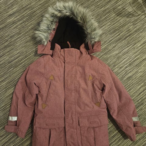 Siisti, käytetty popin lämmin hupullinen toppatakki. Kulumaa kauluksessa ja tummentumaa paikoin, mutta ei haittaa käyttöä.