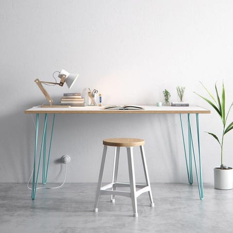 Upea, jälkifunkkis -tyyliä huokuva kirjoituspöytä mustilla kolme-sauvaisilla pinnijaloilla. Sopii täydellisesti esimerkiksi kodin etätyöpisteeksi tai vaikkapa askartelupöydäksi. Pöytälevy on kestävää ikivanerilevyä ja jalkoina klassiset, teräksiset pinnijalkamme. Tuotetiedot Levyn Väri: Valkoinen formica-laminaattipinta molemmin puolin levyä. Reunoissa näkyvä viiluvaneripinta. Pinnijalkojen väri: Musta / Valkoinen / Teräs / Pastellinvihreä / Pastellinsininen / Keltainen / Oranssi / Sinkki (valittavissa) Materiaali: Laminaattipintainen vanerilevy. Levyn paksuus 25 mm. Levy on kooltaan 120cm x 60cm. Pinnijalat ovat 10 mm paksut ja kolme-sauvalla varustetut. Paino: 17,2 kg. Pakkaus: Levy sekä pinnijalat toimitetaan yksittäispakattuna erikseen. Käytämme pakkausmateriaalina ekologista kierrätyspahvia. Huom. Pöytälevyä on saatavilla rajoitetusti myös mustana versiona. Tiedustelut sähköpostitse: info@pinnijalkapojat.fi Pöytälevyn ja halutut pinnijalat voi tilata myös erikseen verkkokauppamme valikoimasta, jolloin koko tyyli- ja värimaailma on vapaasti yhdistettävissä. Kestävää ja käytännöllistä muotoilua Vaneri on klassinen huonekaluissa käytetty materiaali, jossa yhdistyy erinomainen kestävyys ja resurssitehokkuus. Vaneri löi itsensä läpi huonekaluissa 50-luvulla, jolloin moni tunnettu muotoilija tarttui materiaaliin sen käytännöllisyyden tarjoamien mahdollisuuksien vuoksi. Kyseisiä vaneriin pohjautuvia huonekaluja näkeekin paljon modernissa skandinaavisessa sisustuksessa.