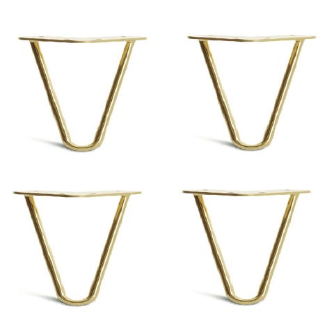 Täysi setti (4 kpl) laadukkaita metallisia pöydän jalkoja. Pinnijalat ovat pituudeltaan 25cm ja 2 sauvalla varustetut. Näillä jaloilla on mahdollista toteuttaa esimerkiksi unelmiesi sohvapöytä. Nämä pinnijalat soveltuvatkin hyvin esimerkiksi senkkiin tai lipastoon. Tuotetiedot Väri: Messinki. Pakkaus sisältää puuruuvit ja tyyliin sopivat tassut. Materiaali: Messinki-pinnoitettu galvanoitu teräs, teräksen paksuus 10mm. Paino: 3,0kg Painoraja: Suositeltu maksimipaino näiden jalkojen kanssa on noin 200kg. Kestävää ja käytännöllistä muotoilua Pinnijalat ovat lähtöisin jo 1940 luvulta, kun Henry P. Glass suunnitteli kyseiset pöydänjalat. Tämä designklassikko syntyi siis toisen maailmansodan aikaan kun raaka-aineiden (ml. metallien) saatavuus oli heikkoa. Koska metallien saatavuus oli tuolloin hankalaa, syntyi oivallus hiuspinnin muotoisista jaloista. Muotonsa ansiosta pinnijalat pystyvät kannattelemaan huomattavaa painolastia säilyttäen samalla kevyen ilmeen. Pinnijaloissa yhdistyy siis modernin funktionalismin ajattelutapa, jossa muotoilu palvelee ennen kaikkea käytännöllisyyttä. Arvostamme laadukasta käsityötaitoa ja siksi jokainen pinnijalkamme on valmistettu alusta loppuun huolellisesti käsityönä. Vaikka pinnijalkamme ovat yksilöitä, ei tiukoista laatuvaatimuksista tingitä. Pinnijalkamme on tarkoitettu sinulle Tuotteemme ovat suunniteltu erityisesti huonekalujen tuunaajille, sisustalan ammattilaisille ja tee-se-itse mentaliteettia harjoittaville suomalaisille. Näiden laadukkaiden metallijalkojen avulla saat aikaan vakaan ja tyylikkään ilmeen niin uusille kuin vanhoille huonekaluillesi.