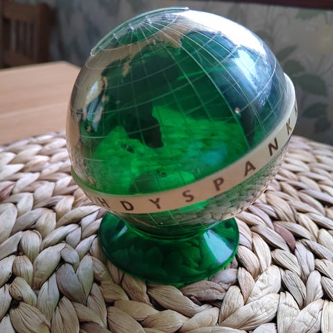 Turkoosin sininen maapallo säästölipas.