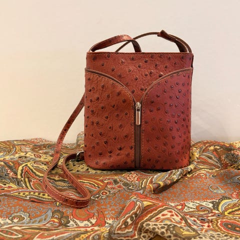 Konjakinruskea Aleksi Collection bucket - nahkalaukku. Sisällä ison osion lisäksi vetoketjullinen pieni tasku, siisti vuorikangas. Olkahihna säädettävissä.