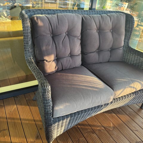 Myydään maskun ulkosohva. Viimeisessä kuvassa on myytävää vastaava sohva. (myydään ilman pöytää koska pöytää ei ole.)
