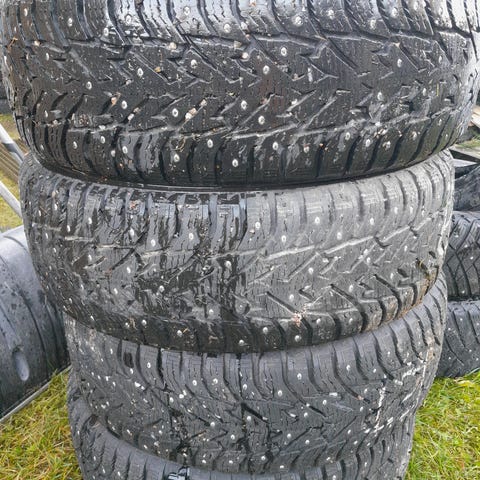 Ok kuntoiset nastarenkaat, pintaa vielä hyvin, 7-10mm ja nastatkin tallessa