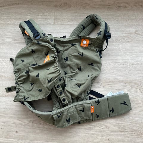 Ehjä Tulan säädettävä rintareppu. Hieman aurinko haalistanut muutamasta kohtaa, muutoin siisti.