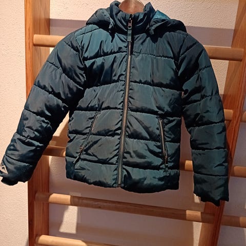 Toppatakki koko 134. Lindex. Siisti käytetty kunto. Edessä pieni jälki (kuva). Irroitettava huppu