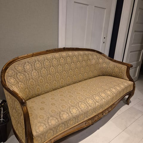 Vanha sohva ja kaksi nojatuolia. Sohva ja toinen nojatuolista hyvässä kunnossa, toinen nojatuoli on joutunut koiran kohteeksi😅 irrottanut nauhaa sekä hieman maistellut. Kuvista näkyy hyvin. Ei kuitenkaan syönyt niin että haittaisi sen enempää kuin ulkonäöllisesti.