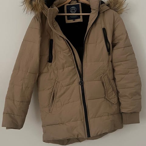 Hyväkuntoinen lämmin talvitakki, koko 160, irrotettava huppu. Nouto tai postitus
