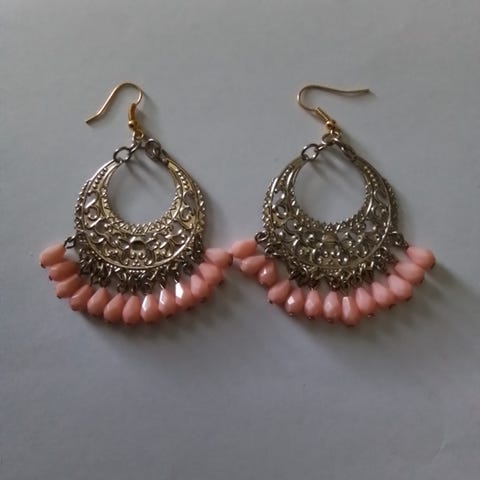 Näyttävät korvakorut pinkin ja oranssin värissä, pituus koukun kanssa 5,5cm. Uudet.