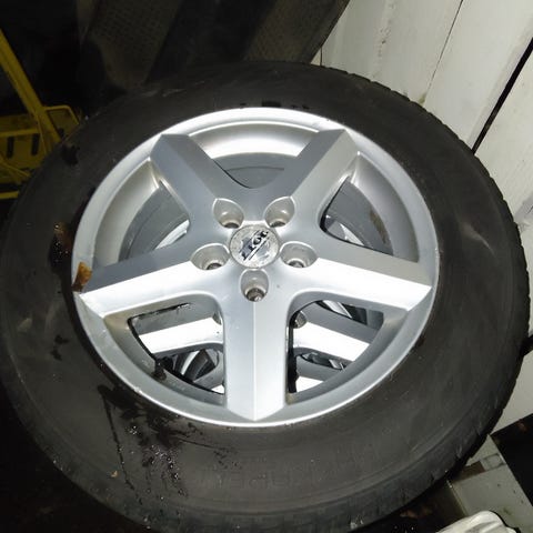 Hankookin nastarenkaat, paljon pintaa, muutama nasta puuttuu, 4 vuotta vanhaa kumia. Vanteet rumat.