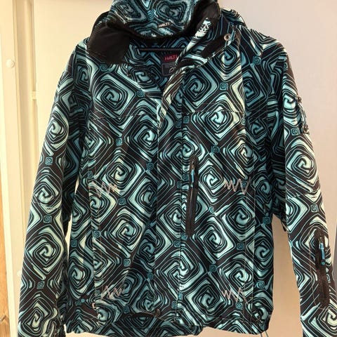 Burton Lasten Takki koot 150-163cm, värit sinaappi ja vihreä. Takissa on hupullinen malli lumisuoja helman alla ja korttitasku ranteessa joka on valmistusvirheen takia vähän tiukka mutta toimiva ja vetoketjutaskut. Sisävuori on vihreä, materiaali näkyy kuvista.
