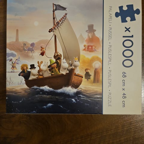 Moomin 1000 palan palapeli, jonka koko on 68 x 48 cm. Palapeli sisältää 1000 palaa ja kuva-aiheena on Muumi-hahmot. Nouto Espoon Tillinmäestä, maksu käteinen/mobilepay.