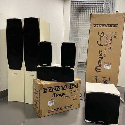 Kaiuttimien kulmissa hieman irtonutta pintaa, jonka saa helposti siistiksi pikaliimalla.
