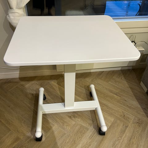 Myydään hyväkuntoinen työpöytä. Korkeus säädettävissä 72-112cm. Säätö helposti vivulla, joten voi päivän aikana työskennellä istuen ja seisten.