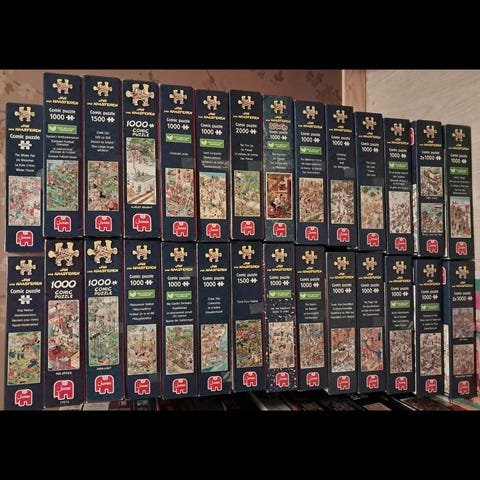 Jan van Haasteren palapelit. Kuvassa näkyy aiheet. 10 €/kpl.