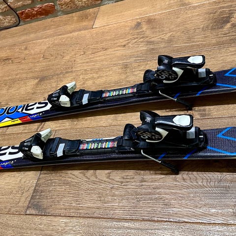 Salomon Crossmax 110 , sininen väri, pituus 110. Sukset ovat käytettyjä ja niissä näkyy käytön jälkiä, mutta ne soveltuvat edelleen lasketteluun.