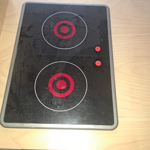 Jotexilta ostettu leikki keittiö, yksi hylly tipahtanut koska kannattimia uupuu kaksi, varmaan ostettavissa