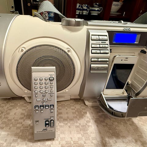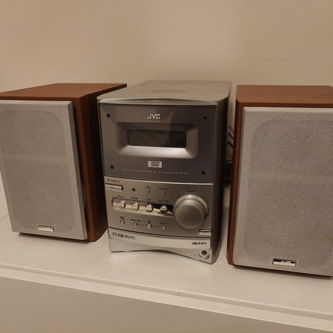 JVC UX-LP5 stereosarja, kahdella kaiuttimella. Mukana USB- ja 3,5MM AUDIO IN liitäntä, sekä iPod telakka.