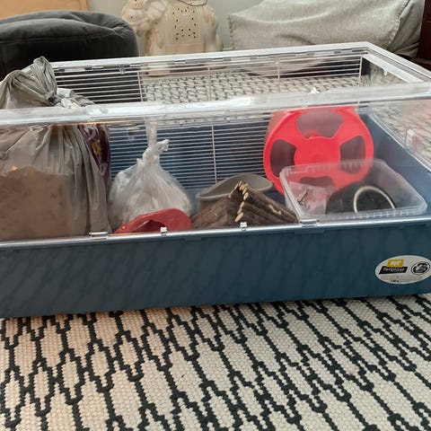 Myynnissä kääpiöhamsterin häkki tarvikkeineen + kuljetushäkki. Häkistä löytyy juoksupyörä, ruokakippo, kylpyastia, juoma-automaatti, oleskelumökki ja puuportaat. Häkki on kolmikerroksinen ja sieltä löytyy kaikki tarvittava. Ollut vain vähän aikaa käytössä ja juuri pesty.