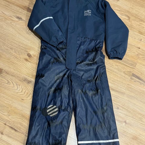 Tämä oli meillä tosi tykätty haalari, tarkenee fleecepuvun kanssa kylmemmälläkin säällä. Toisessa hihassa pari pientä tahraa, lähtisi varmaan tahranpoistoaineella eikä päällä ollessa oikeastaan näy.