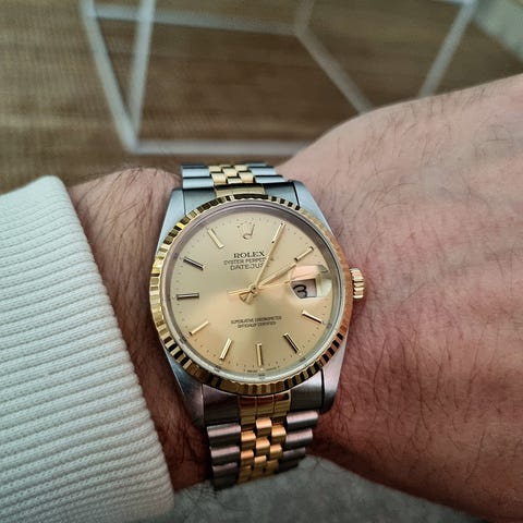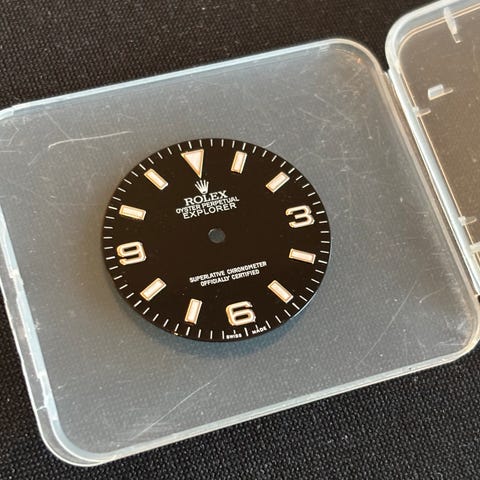Tarjolle upea Rolex Explorer I Mark I. Erittäin selkeälukuisella mustalla taululla jossa ei mitään ylimääräistä. Teräksinen kuori sekä täyspitkä teräsranneke. Koneistona toimii loistavin käyntiarvoin tikkaava Rolex 3132- automaattikaliiperi jossa 48h käyntivara. G-sarjaa eli vuodelta 2010 ja se on RSC-huollettu 3/2022. Jonkin verran käytöstä tullutta kulumaa havaittavissa.