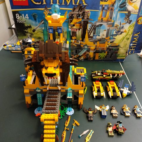 Harvoin tässä kunnossa tarjolla oleva Chima setti vuodelta 2014. Kolmen ekan pussin jälkeen on tekijältä loppunut mielenkiinto ja homma jäänyt kesken, joten suurin osa osista vielä avaamattomissa alkuperäisissä pusseissa. Jo avattujenkin pussien osatkin priimakunnossa. Tarrat vielä alkuperäisessä arkissa kahta lukuunottamatta. Alkuperäistä laatikkoa ei löydy. Nouto toridiili tai postitus jolloin kulut lisätään hintaan.