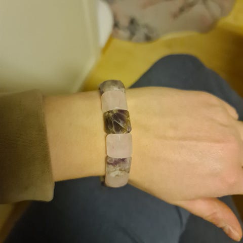 Upea korkealaatuinen rannekoru jossa ametistia ja crazylace-akaattilaattoja.💜