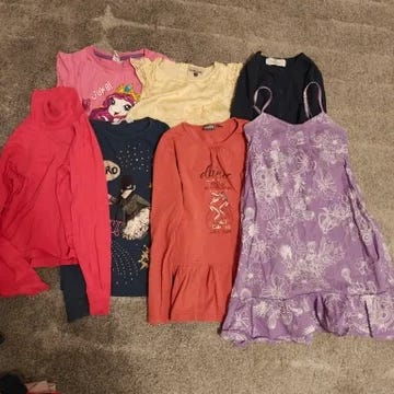 Paljon erilaista vaatetta. Monia collage paitoja ja huppareita. Iso kasa edullisesti