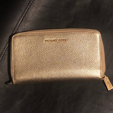 Ruskea Michael Kors lompakko nahkaa. Vetoketjusuljenta, sisällä paikat korteille ja seteleille. Kolikoille oma lokero nepparisuljennalla. Hienossa kunnossa, vain sisällä yksi kulumakohta joka kuvattu. Koko n. 11 x 9 x 2 cm.