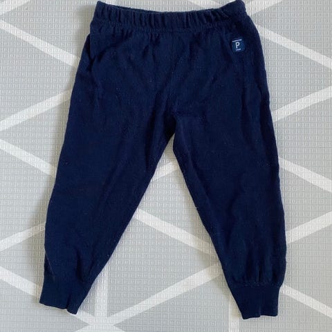 Merinosekoitehousut 86/92. Molempiin tarjolla settiin kuuluva body eri ilmoituksessa. Nukkaa ja tummansinisissä reikä takana.