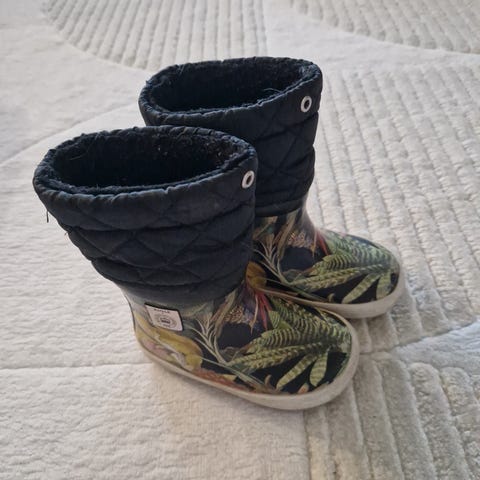 Myydään Aigle Lolly Pop -kumisaappaat. Supersöpö kirsikkakuvio. Ehjät, mutta sisäpinnan vuori repsottaa vähän (kts kuva). Mukavat jalassa ja helppo pukea.