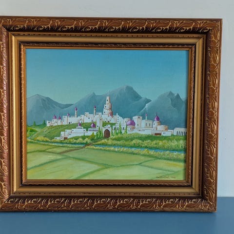 Naivistimaalari Veikko Sirenin iloa ja väriä pursuava maalaus Tuulimylly vuodelta 1987. Teos 50 x 39 cm, kehys 61 x 50 cm. Ostettu taideliike Finnanticista tammikuussa 1992.