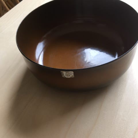 Vintage, metallinen emaloitu Finel kulho, design Leif Eriksson, emali ehjä.