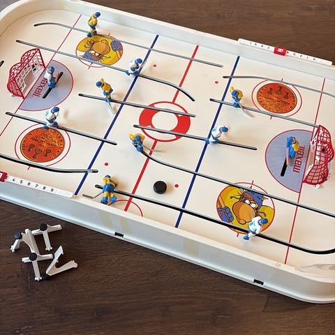Stiga Hockeypeli pöytäversio, jossa on pienoishahmot pelaajina ja maalit kummassakin päässä. Peli sisältää useita pelaajia, jotka on kiinnitetty pelialustaan tankojen avulla. Pelialustan pinnalla on eri yritysten mainoksia. Sopii sisätiloihin pelattavaksi ja tarjoaa perinteisen pöytäjääkiekkoelämyksen.