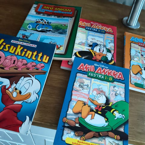 Myydään kuvan mukaiset kovakantiset Aku ankka kirjat. Hinta 5 euroa kappale tai kaikki neljä yhteensä 17 euroa.