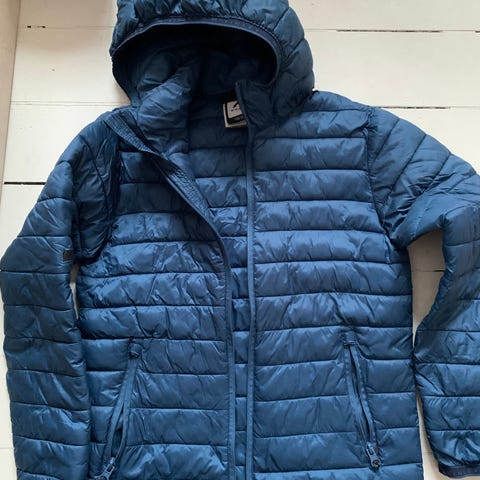 Myydään erittäin hyväkuntoinen ja laadukas kevyttoppatakki. Koko 150cm. Tummansininen. Hyvät heijastavat kohdat alaselässä ja hupussa. Hupun saa irti. Kiristysnyöri helmassa. Nouto Ruskeasanta. Kissatalous.
