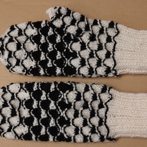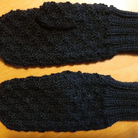 Itse neulotut naisten lapaset Novitan 7 veljestä langasta. (18) Lev n. 9, peukalosta n. 13 cm. Hintaan lisää toimituskulut.