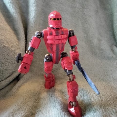 LEGO Santis 8772 ritari. Kilvestä, vasemmasta kädestä ja rinnasta puuttuu palasia.