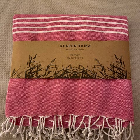 Myydään uusi hamam-pyyhe Saaren taika Seilori vihreä-sininen koko 100x175. Ostin useamman ja tämä olikin vähän turhan vaalea vihreänsävy. Täysin uusi ja vielä pahveissaan.