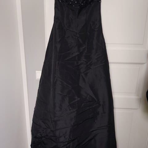 Kaksiosainen naisten juhla/iltapuku. Koko XL, mutta käytännössä M:n ja L:n välillä. Hameosaa otettu sisään, on siis levennettävissä purkamalla sisäänotot. Yläosa säätyy moneen vartalotyyppiin. Ollut kerran käytössä 160 cm pitkällä naisella.