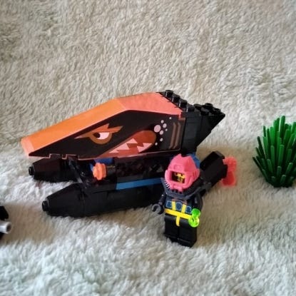 LEGO Alpha Team Aquatic Mech 4789 vuodelta 2002. Setistä puuttuu osia, mutta figuuri on kokonainen, jos räpylöitä ei lasketa.
